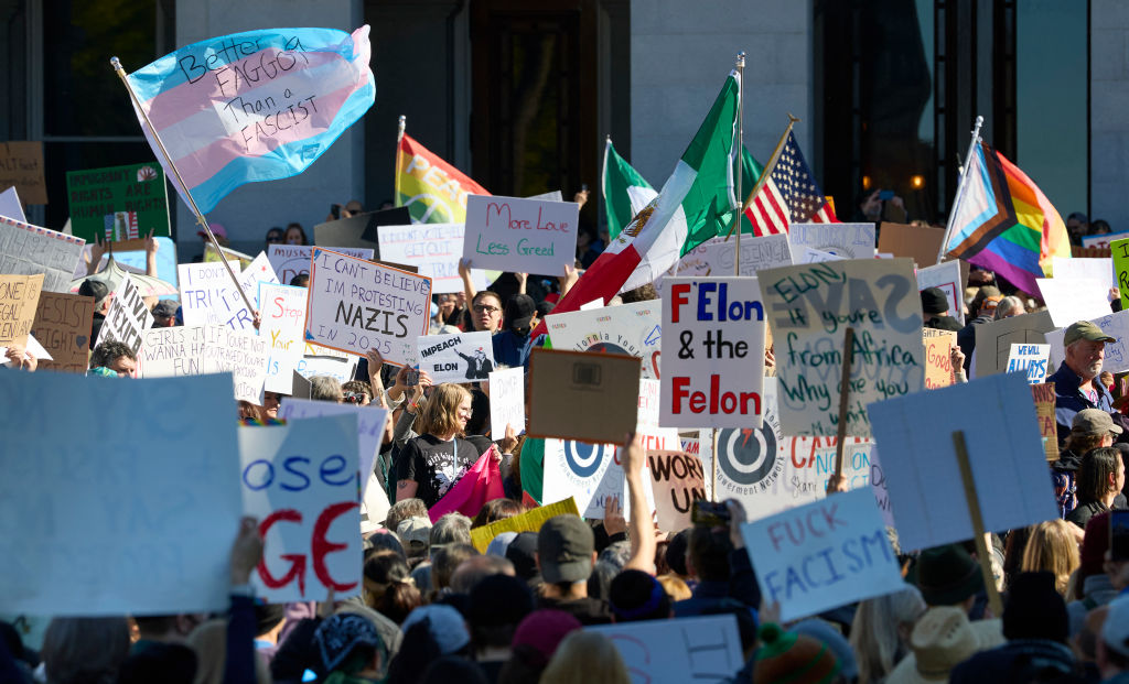 Less than a month into Trump’s second term, some of the most widely critiqued moves of the Trump administration, according to signs and protesters, have been: the unprecedented overreach of Elon Musk’s Department of Government Efficiency (DOGE), which has slashed thousands of federal jobs across DEI and government watchdog sectors; the implementation of many aspects of Project 2025 at the federal level, including shutting down USAID, attacking the Department of Education and halting federal aid, including food assistance programs, Head Start and funding for domestic violence shelters; and pardoning Jan. 6 participants and antiabortion extremists.