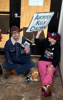 Footage from Jason Murphy posted to Facebook, shows him and fellow blockader Laurie Resch sitting on the ground, deliberately obstructing the clinic entrance while attempting to intimidate women seeking and staff providing abortion and other reproductive health care.