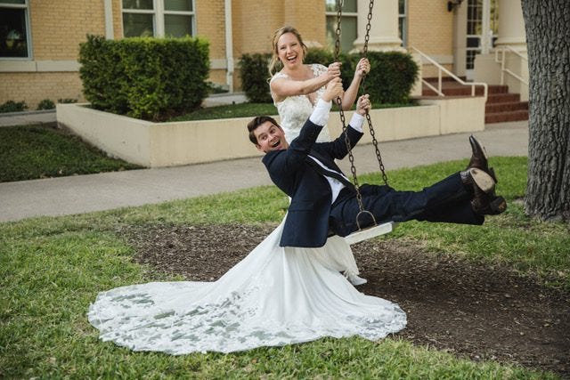 Texans Megan and Kevin Bond on their wedding day. (Courtesy of Megan Bond)