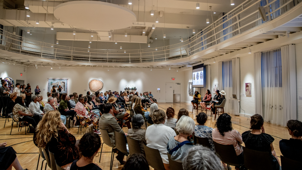 The museum catalogue pointedly asks what role art might play in “shaping the next notation inscribed on Shlain’s tree ring.” The answer unfolded in part in the 21c gallery space that night, where nearly 200 people came together for a reception and panel discussion featuring Shlain with local community leaders working to protect and advance equality and women’s rights in Missouri and beyond.